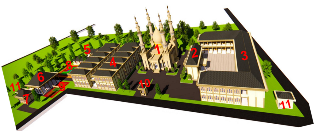 Pembangunan tahap awal dimulai dengan pembangunan masjid, asrama, kelas belajar dan dapur di atas tanah wakaf seluas 1.8 ha. Dengan perkiraan dana yang dibutuhkan ditahap awal